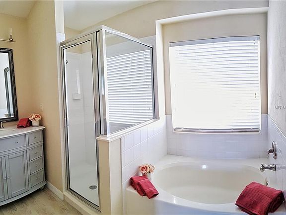 This charming 4 bedroom, 3 bath home is now under 300k! Situated on a premium waterfront lot in the peaceful community of Regal Oaks, you can envision yourself relaxing each evening on your lanai, watching sunset over the lake. Inside you will find a lot of the updating has already been completed for you. New ceramic tile and laminate flooring throughout all the living areas, beautiful new cabinetry in all bathrooms, fresh paint inside and out. Master bathroom features double vanity, spacious walk in shower and linen closet. Brand new appliances in the kitchen including refrigerator, dishwasher and stove. The 4th bedroom has it's own bath and door to lanai, so it can even be used as a mother-in-law suite. Community pool, 2 car garage, centrally located and just minutes from the UTC Mall, restaurants and I-75. The beaches are 20-25 minutes away. Come to see this fabulous home today!