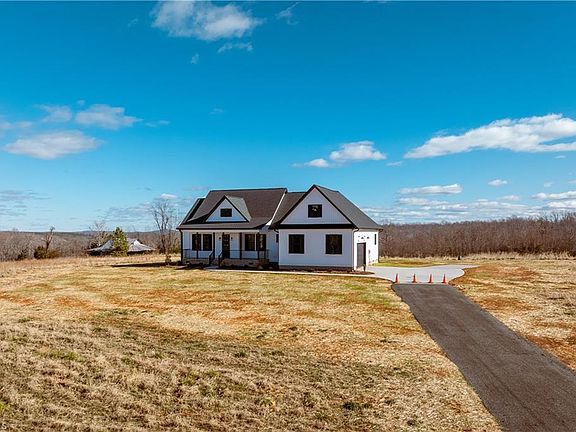 Discover this stunning, one-of-a-kind modern farmhouse offering true one-level living on 45 private acres in Sandy Ridge. This brand-new 4-bedroom, 2 full bath home includes oversized 2-car attached garage and a drive though 58x29 detached garage with loft and half bath. Enjoy relaxing evenings on the covered front or back porches overlooking beautifully wooded land. The secluded primary suite features double tray ceilings and a spa-like bath with a free-standing tub and separate shower. At the heart of the home, the open-concept kitchen, dining, and living areas provide an inviting layout, complete with a large island, walk-in pantry, and a detailed shiplap fireplace with a cedar mantle. Three additional bedrooms sit on the opposite side of the home and a full bath, ideal for guests. Come explore this exceptional property and fall in love with its peaceful setting and thoughtful design.