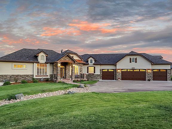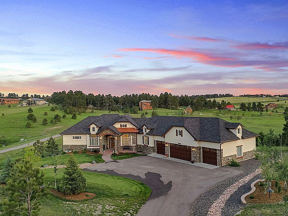 Every detail in this stunning custom home shows intentionality and craftsmanship. The panoramic Pikes Peak view from the spacious deck is the picture of serenity. Main level living in the luxurious master suite with laundry in the master closet make living here a breeze. The gourmet kitchen with an incredible JennAir gas range with double oven, top of the line cabinetry and marble countertops show no expense was spared. A fully finished walkout basement with three bedrooms, a theater room, a well-equipped wet bar and three laundry rooms in the house beam with potential for multi-generational living. Upgraded flooring throughout includes beautiful hardwood, masterfully laid tile and cushy carpets. Plantation shutters on the main level provide stylish privacy. Custom craftsman trim and superb construction quality throughout the home show no detail was overlooked. A 2.5 acre lot in the exclusive Majestic Pines neighborhood provides ample space and the feeling of being away from it all, yet it's only a 10 minute drive to the grocery store, amenities and I-25. This property has the rare blend of pristine views, natural beauty AND an easy commute to Denver or Colorado Springs. Four bedrooms plus an office provide plenty of space to work from home as well. Work, play, relax and enjoy time with loved ones in this fully custom beauty. Lift your eyes to Pikes Peak from the one-of-a-kind gazebo. Roast marshmallows and create memories around the fire pit on summer nights. Cook gourmet meals in the lavishly spacious kitchen. Curl up with a good book in front of one of your two gas fireplaces. Relax in your spa-like master bath with a free standing tub and walk-in shower. You can't help but enjoy life when you live in this masterpiece.This is more than a house, it's a dream home.