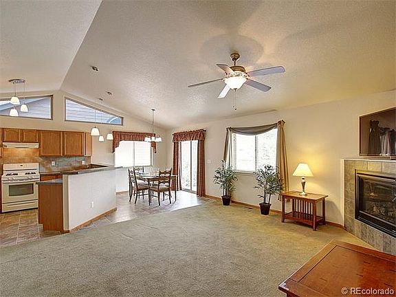One-Level Living in award winning Aspen Home's Pinyon style Home. Energy Rated & GREEN features equals low utility bills from high efficiency gas furnace and tankless hot water heater. New plush carpet on main floor, master suite w/ laundry, electric washer and a gas dryer. Oversized garage. Kitchen with gas range,refrigerator, and dishwasher. Nice landscaping surrounding the property. New Roof 2012. New Trex Deck, rock w/privacy fencing in the back, curtains/blinds, & many storage shelves. One of Loveland's most popular neighborhoods nestled near foothills boasts playground, b/b court, new Elementary School & nearby walking trails! Finish huge basement to build equity.