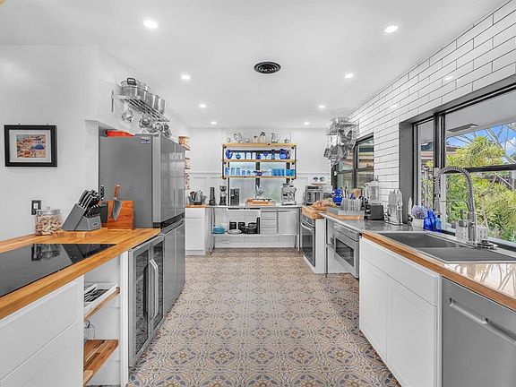 Waterfront, pool home in desirable Oakland Park; this home was designed to entertain. Adjacent to Wilton Manors, this large 2/2 home w/garage has been renovated from top to bottom meticulously paying attention to every detail. 2023- New metal roof, exterior painting, industrial chefs kitchen with SS appliances and cabinets, counters, and pot rack. Expanded primary bath with dual rain shower, heated towel rack and fog-less mirrored cabinet. Also added built in shelves, new doors/trim/wainscoting, salt water pool conversion. 2022- Tankless W/H, hall bathroom, tile flooring throughout, new ceilings, landscaping with pollinator garden, fruit trees, new plumbing, electric panel with outside electric connector for generator, and recessed lighting. So much more, too much to list. MUST SEE!