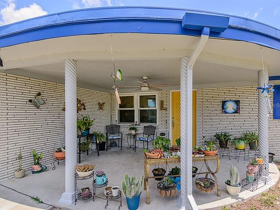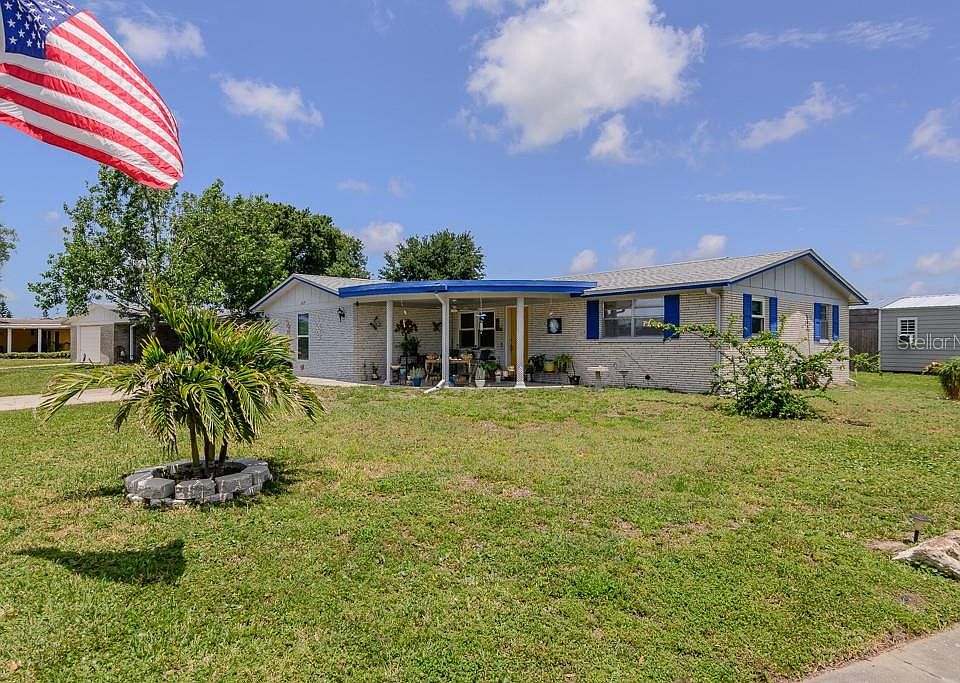 Beautiful 3 bedroom, 2 bathroom corner extra-large lot home located in Aloha Gardens with two incredible sheds that are pre wired for electricity. Enter into the open living/dining room. Eat in Kitchen with lots of counter and cabinet space, windows and sliding glass door to private screened in patio. Split floor plan. Huge master bedroom with gorgeous laminate wood floors and en-suite. The hall bath has a bathtub and shower. The 2nd and 3rd bedroom are spacious and also has lovely laminate wood floors. This home is nicely appointed and merges the old Florida with the new. The sheds in the back yard are insulated with storage lofts, windows in each, wired for electricity, linoleum flooring, metal roof and are currently being used as an Art Studio and a workshop. Between the sheds is a cement block floor and a barn door with padlock to store lawn mower, motorcycle, etc. All windows in the home except for 3 have been replaced with triple pane windows. Roof replaced in 2018, new toilets, fixtures, sewer lines cleaned, interior bedrooms and bathrooms repainted. Back yard fenced. You can join the community pool for a small fee. Close to schools, churches, shopping, restaurants and a short drive to Florida's award-winning beaches. Seller motivated