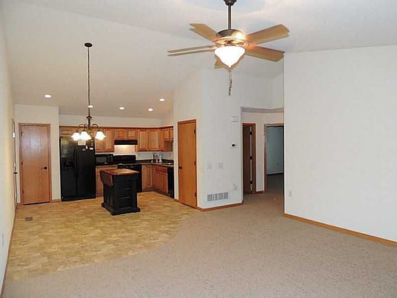 Fabulous condo featuring vaulted ceilings, open floor plan and kitchen with island. This ranch condo has 4 bedrooms and over 2500 sq ft. finished. New carpet. A pleasure to show. zero entry garage and front door. handicap access.. Large doors and hallways. zero entry shower as well.