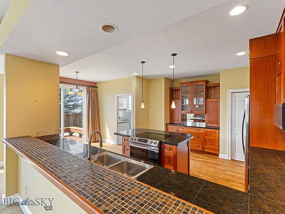 Stop by and enjoy this fantastic Bozeman location, close to Sacagawea and Morning Star schools, essential services and Bozeman's fine trail systems. This 4+ bedroom home offers plenty of natural light, vaulted and 10' ceilings, lots of hardwood and tiled floors plus a custom cherry kitchen with granite tile tops, cabinet lighting and a clean open design. Attached dining and counter bar which is open to the family room offer lots of family and/or entertaining options. The spacious primary bedroom includes a large walk in closet, a custom bath with lots of tile, glass shower, soaking tub and heated floors. Don't miss the full office next to the entry and laundry/mud room off the oversized garage. Downstairs you will find 2 additionally large bedrooms, full bath, lots of great storage and full sized family room...pool table ready. Fully landscaped with fenced backyard, UG sprinklers, dog run and fantastic SW facing patio space. New siding, fascia/soffit and roof 2023/24 Call Your Realtor Today!