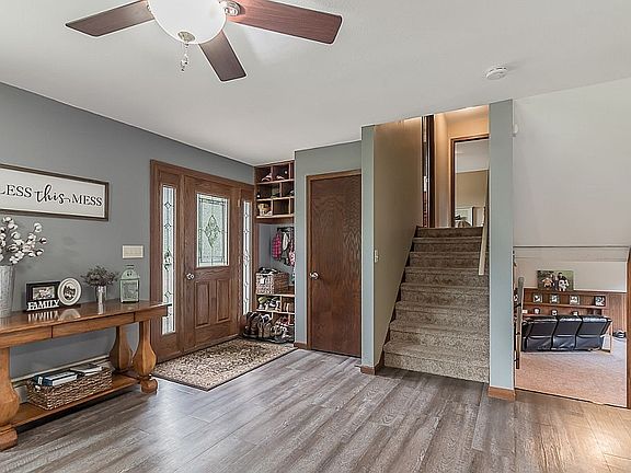 Take advantage of this outstanding opportunity to own this wonderful multi-level home nestled on 1.8 acres! This home offers great flow beginning with the open concept living, dining, and kitchen areas featuring beautiful laminate flooring throughout - giving it a seamless look. The kitchen boasts stainless steel appliances, convenient breakfast bar, ample cabinetry, tile backsplash, and walk-in pantry. Off the dining area is access to a large deck. The upper level hosts 3 bedrooms including the spacious master with private access to the Jack & Jill bathroom. The walkout lower level offers a huge family room with many windows, access to the outside patio area, a wet bar, ¾ bathroom, and access to the garage. Heading down to the lowest level of the home, you will find the 4th bedroom with egress window, laundry/mechanicals, ample storage, and outside access. And if that wasn't enough, just wait until you see the expansive green space featuring a chicken coup, 18x36 storage shed, two apple trees, raspberry bushes, blackberry bushes, large rhubarb patch and lots of room to roam. Great spaces abound both inside and out - call today to take a look!