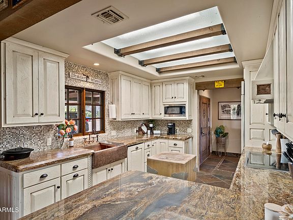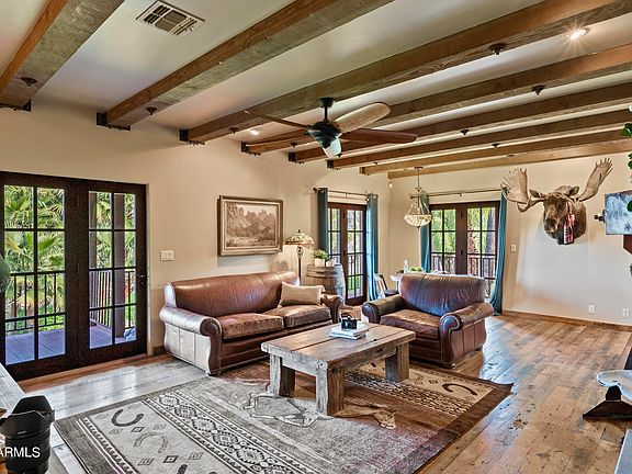 AMAZING 41.19 ACRE! EVERYTHING you need!! Privacy! 2nd owner. Amazing views! Mature landscaping. Large shop. Airplane Hanger. Access to runway! Abuts State land. End of the road location! 3 wells. Pool. Horse stalls, large turnout. Home has been remodeled from top to bottom. Slate & natural real wood flooring. 2 fireplaces. Kitchen-Knotty Alder cabinets, Granite slab, SubZero frig/freezer, Copper Sink. Custom entertainment center built with Mesquite wood. 4 sets of French Doors exit to the wrap around deck. Real wood beams in livingroom, custom rock fireplace w/Mesquite mantel. Large master bedroom w/ sitting room, tiled shower, master walk-in. French doors exit to covered wraparound deck. Downstairs-2 bedrooms, custom rock, woodburning fireplace, full bath, craft room, laundry area. Exit from lower level to lush backyard. Block wall surrounds your beautiful backyard. Large trees, grass, sitting area. Your own dream barbeque area, perfect for entertaining. Large covered dog pen.