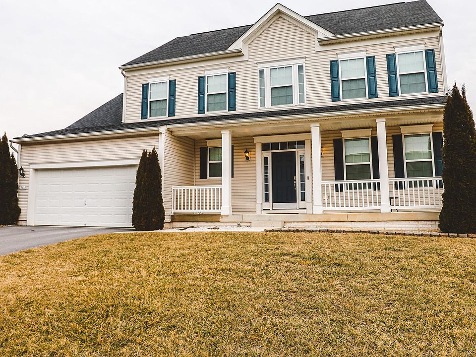 BACK ON THE MARKET! BUYERS FINANCING FELL THRU! 4 Bedroom, 2.5 bathroom colonial in Stonebrook Village. This open floor plan home features brand new carpet throughout. Hardwood flooring in the foyer leading into the kitchen, formal dining room, and breakfast nook. Spacious kitchen with tons of counter space and storage, and opens to the family room. Generous sized spare bedrooms and a full bathroom are on the second level, along with a large primary bedroom featuring a walk in closet and full bathroom with soaking tub. Unfinished basement plumbed for a full bathroom. Two car garage with room for storage. **PENDING RELEASE**