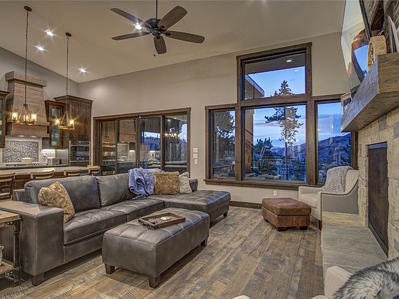 Outstanding mountain modern home in the prestigious Eagles Nest Neighborhood backing to 7+ acres of open space. This gorgeous home offers an exceptionally smart floor plan. The main floor features a large and comfortable great room perfect for entertaining friends and family, fully equipped chef’s kitchen, primary suite, laundry, mudroom and half bath. The lower level living room features a wet bar, game area, 2 bedrooms and 2 baths. On the upper level you will find a large customized private bunkroom, an additional bathroom and a bathroom. Below the 3-car garage is a 700+ Sq.Ft. workshop adding extra storage and utility to this home accessed via the lower level or exterior side entrance. Expansive windows bring the gorgeous valley views inside while overlooking the Raven Golf Course.