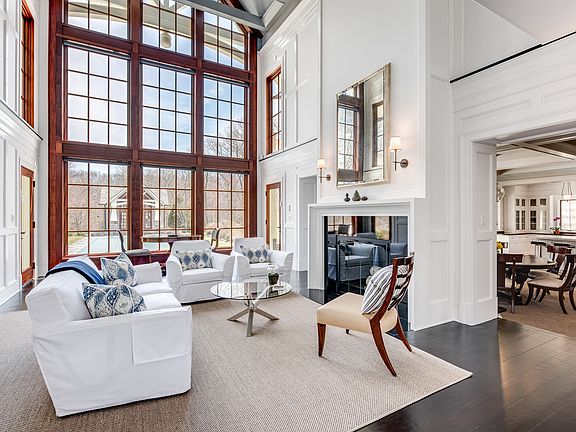 A beautiful winding driveway sets the stage for this very private gated hilltop estate nestled on 3.65 acres midway between Bridgehampton and Sag Harbor. Designed by architect John Laffey, this well-built shingle-style home incorporates exquisite stonework and mature landscaping. It features more than 8,550 +/- sq.ft. of living space in the main house and two accessory buildings. Despite the home's scale, the rooms are intimate, exuding warmth and casual elegance. The foyer leads to a light-filled two story living room with a mahogany-framed window wall overlooking the pool and pool house. Off the living room is a media room with fireplace, and a junior master suite currently used as an office, with a full marble bath and custom walk-through closet. Sharing the living room's two-sided fireplace is the elegant dining and kitchen area. The kitchen features custom-designed cabinetry, Carrara marble island, and dark-stained lacquered oak countertops. Appliances are by Wolf, Sub-Zero and Bosch. Outdoor dining with a built-in barbecue is adjacent. A butler's pantry with wine cooler and ice maker and a mudroom complete the floor. Upstairs, French doors lead to the five-room master suite's sitting room with fireplace, bedroom with mahogany deck overlooking the pool, and magnificent marble bath featuring radiant-heated flooring, double vanity, frameless glass shower and Bain Ultra tub. A custom dressing room and walk-in closet complete the suite. Down a spacious hallway are two en-suite guest rooms with a shared balcony. Opposite is a laundry room and just beyond is the exercise room. On the south side of the porte cochere, is a private guest apartment, with a living room, kitchenette, bedroom with walk-in closet, and a full marble bath. A staircase leads to a private outside entrance and to the two-car garage. A three-story carriage house is linked to the main house via a covered stone terrace. A private two-room suite with kitchenette and full bath is on the top floor. A foyer, bicycle room and 3-car garage is on the driveway level. And a wood shop and second laundry are on the lower level. The property, with room for tennis, enjoys a heated gunite pool with automatic cover and a spa with independent systems enabling differing months of operation. The pool house offers an entertainment area, powder room and dressing room.
