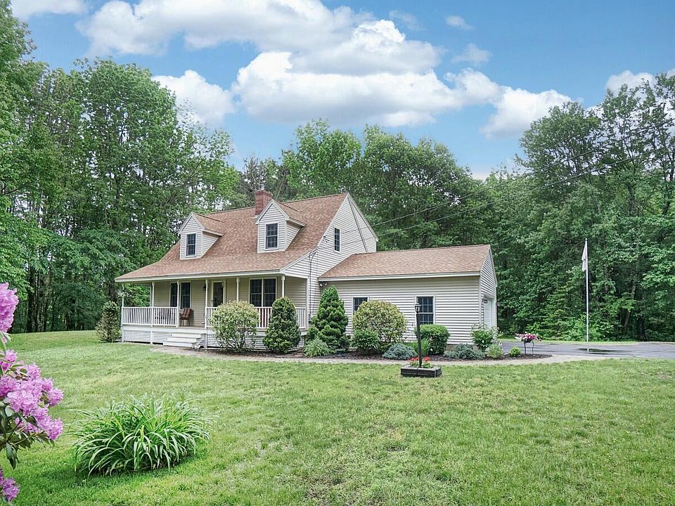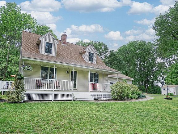 Everyone LOVES a farmer's porch!! There is so much more to love about this immaculate home! The first floor is a great use of space that combines the open concept area of kitchen to living room with a separate formal dining room. The slider opens out to a deck with ample space to enjoy the lovely rural setting. The kitchen island adds extra counter and cabinet space. Plus there is a pantry! The fireplace in the living room has a wood burning insert with blower that is a cozy alternative heat source. The 3 bedrooms on the second floor are flooded with natural light from the double windows and the primary bedroom has TWO walk in closets. The finished basement offers more useful spaces. It has a custom designed oak bar with additional oak built-ins. It provides ample space for entertaining and exercising plus a 10'x12' sorage room. The abundant yard and landscape provide a private area for entertaining, a haven for birds and plenty of space for gardening vegetables and flowers. The property has a country feel yet is close to all the great things that the area has to offer. Fuller Farm Nature Preserve is just a half mile up the road. There, you will find walking trails through fields and woods leading to a waterfall. It is only 4 miles to Route One/Dunstan's Corner, 8 miles to Pine Point Beach and less than 25 mins to Portland. This home has only been occupied by the original owners and has been meticulously maintained.
