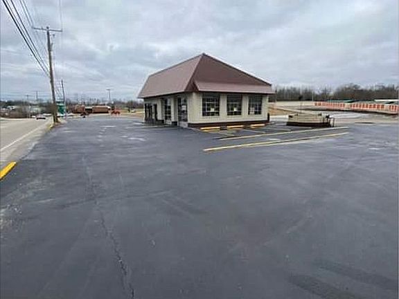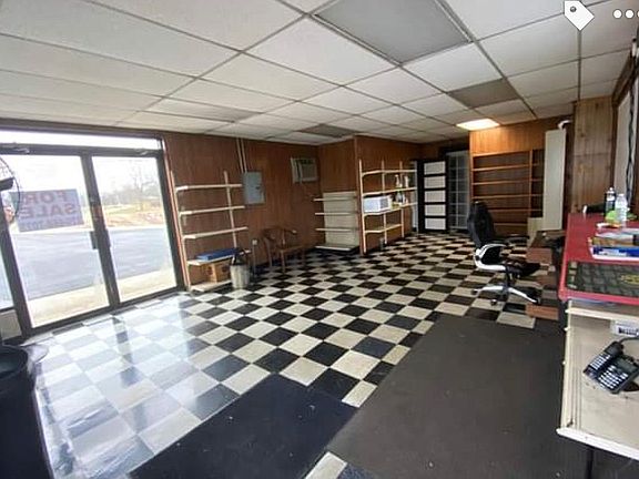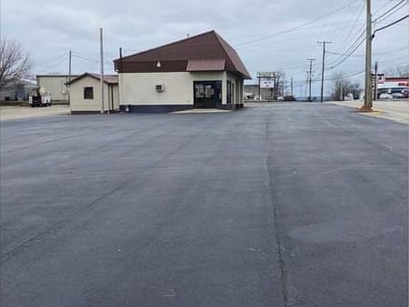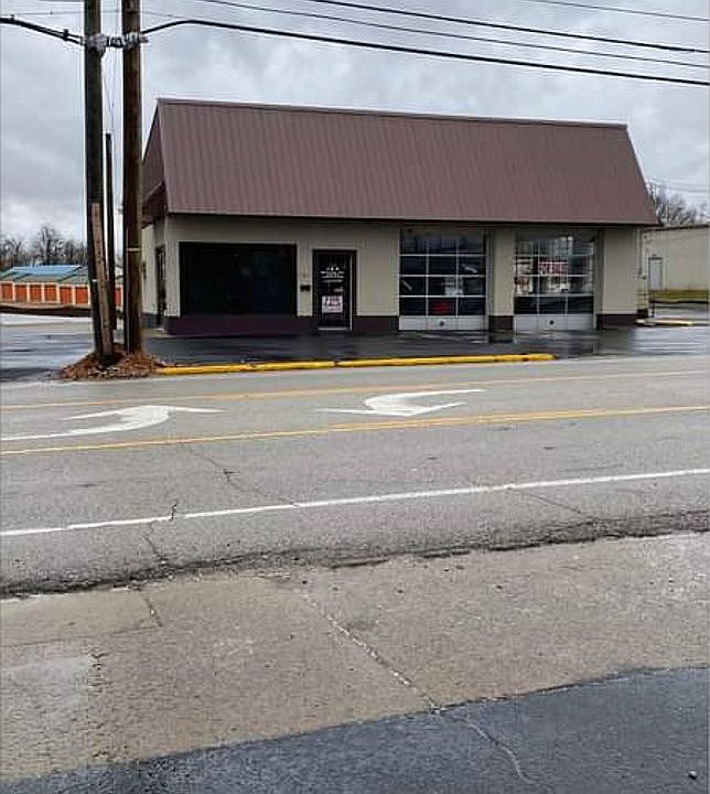 1.23 acres lot and commercial building shop , 2 large garage bays with office space and black topped parking area located on corner broadway & old Ekron road in the center of brandenburg, ky .it does have a baseman as well .