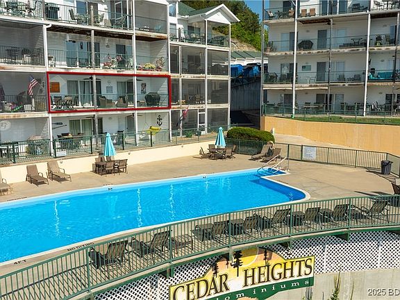MOVE-IN ready unit, meticulously maintained & TURN-KEY 3bed/2bath condo in the gated Cedar Heights community—includes a 12x32' boat slip! This unit was originally a model and has only gotten better with thoughtful updates! Enjoy a covered deck with added soffit & fan, beautiful stone fireplace wall, new carpet (2022), water heater & softener (2020), fresh paint and quality furnishings throughout. The spacious concrete deck overlooks your boat slip, a stunning lake view and the pool below. The master suite features elegant entry doors, a walk-in closet, dual vanity & walk-in shower. Prime location just outside of Camdenton off Hwy 54 and on the 13MM on the Big Niangua—ideal for accessing great restaurants by land or water! Nightly rentals allowed and just minutes away from Ballparks National & a golf cart ride away from Old Kinderhook & it's many activities they offer! Condo is perfect as a full-time home, vacation retreat, or investment opportunity. Come experience it today!