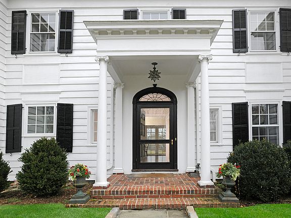 Beautiful Georgian on top of a private road minutes from town. Graceful back to front center hall, high ceilings, beautiful architectural detail, large gracefull living room w/fireplace, dining room w/fireplace, sun room, cathedral ceilings, family room w/stone fireplace , gourmet kitchen w/island, 2 offices, master suite w/tray ceiling & fireplace 2 dressing closets and luxury bath. Five family bedrooms, walk up attic. Garage apt includes living room with cathedral ceiling, bedroom and bath. Pool, spa and lovely private gardens and terraces.
