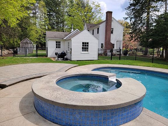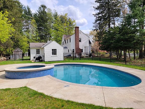 This charming colonial is set on a beautifully landscaped lot with a huge yard surrounded by natural stone walls. Act fast and you can be in the house for the summer and enjoy the heated inground pool with built in spa! And for peace of mind and safety, the pool area is completely fenced off from the rest of the yard. Cozy step down family room with built-in cabinets, shelving, and fireplace. Updated kitchen with white cabinets, granite counters, tile backsplash and stainless steel appliances. Spacious dining room with built-in corner cabinets. A living room with fireplace and updated full bath completes the 1st floor. The upstairs' has three decent sized bedrooms and an updated full bath. Behind the house is a separate building currently being used as a workshop. Septic system was new in 2012. Close to downtown and the Upper Charles Rail Trail. Not sure of the exact dates but the windows, 200 amp electric panel, and gas heating system have been updated at some point.