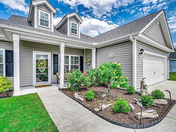 Home is where your heart is! Come see this lovely Southern-style farmhouse located in the wonderful community of Heartwood! This single-level home has adorable double dormers and a front porch where you can sit back and relax. It was built by Creekside Homes in 2020 and it sits on a quarter of an acre located directly on the pond. This lot has the best water view in the entire neighborhood! You will notice beautiful flowers when you arrive. As you come inside, you will see a high vaulted ceiling, luxury vinyl plank flooring, and a large open concept with a split floor plan. The kitchen has a huge island which is perfect for entertaining! It has granite countertops, white cottage-style cabinets, and stainless steel appliances along with a pantry and a gas range that runs off propane. Upscale light fixtures and ceiling fans have been installed throughout. You can enjoy a view of the water from the dining table. The spacious owner's suite has a walk-in closet along with an attached bath with a big shower and dual sinks. You can look at the moon reflecting on the water from bed in the primary bedroom and the rear guest room. The backyard has been fenced-in and it's a great place for your all your pets to play. There is a nice screened-in porch where you can eat your breakfast and there's a patio where you can grill out with your friends. The oversized 20x22 garage has a pull-down staircase with lots of storage in the attic. The washer/dryer and blinds will be included. This fabulous home has been very well maintained by the original owners. The roof has architectural shingles and the HVAC system has been routinely serviced. There is an irrigation system as well. Motorcycles and golf carts are allowed in this community. You can go take a dip in the outdoor neighborhood pool or lounge around in the shade under the covered patio. Heartwood is conveniently located close to Hwy 22 and you can get to the beach in about 30 mins from here! The Historic Downtown Conway area is close by and there are several festivals, boutiques, and restaurants in that area. This move-in-ready home is in the award-winning Aynor school district. You don't want to miss out on this one! Schedule your showing today and don't forget to check out the virtual tour!