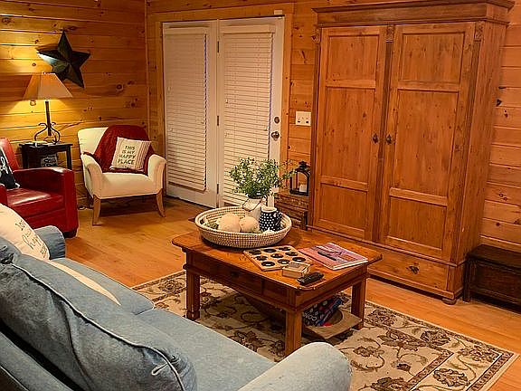 Darling 2 bedroom, 2 bath cabin with additional loft. Family room with fireplace, kitchen and dining room. Walk in closets and beautiful sunsets. Quaint screened-in porch overlooking woodland sanctuary.