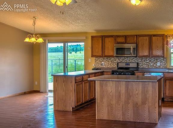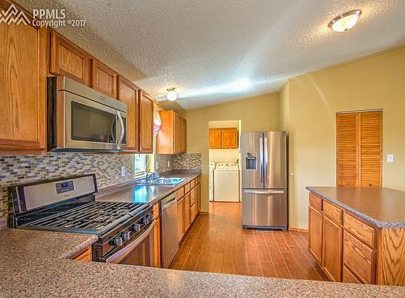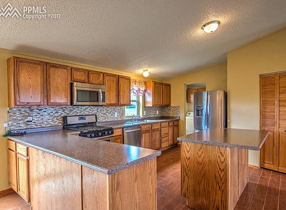 Beautiful Rancher on almost 3/4 of an acre. Jaw dropping, unobstructed views of Pikes Peak. This home is in move in condition. Home has had extensive remodeling done in the last few years to include: windows, metal roof, on demand hot water heater, flooring, appliances, countertops, mosaic kitchen backsplash, electrical fixtures, plumbing fixtures and hardware. Lots of countertop space in the kitchen with island. Vaulted ceilings in the living room. Master bedroom is private and off to one side of the home, includes an attached 5 piece bath and a large walk in closet. Nice large deck to the rear of home with Pikes Peak view. Detached 2 car garage is oversized, has a workshop area and is heated. Metal roofing will help lower those insurance premiums. Easy access to home and a very sunny location. Good producing well and natural gas. Seller has placed approximately 30 tons of rock on driveway and you should never have a muddy driveway again. Come take a look, you will not be disappointed!!