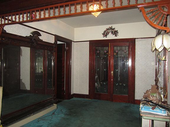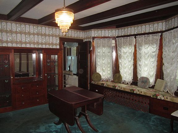 Totally deceptive from street & photos. MUST see inside to appreciate potential & beauty! This home has original woodwork & lighting, beyond beautiful! Enter an entry way off the side porch then a FOYER. To the left is the HUGE living room w/ bricked fireplace & built in book shelves on each side w/glass fronts. Beautiful ceiling wood beams, door way lattis, georgous wood work & doors w/entry to enclosed front porch. Right of Foyer, gorgeous Stained glass French doors entering formal dining room w/bench seat bayed window wall, beautiful chandelier & beamed ceiling, beautiful matching built in hutch w/stained glass, a swinging door leading to BUTLER'S pantry & kitchen w/small breakfast area. 3 bedrooms & 1 bath on the main floor, a HUGE & AMAZING ATTIC w/architectural recess wall of windows. New gas lines 2016. Great potential to create a wonderful 2nd floor living area. A full unfinished basement & detached garage. POTENTIAL!!! Sold AS IS to a cash buyer. TLC needed but WOW!