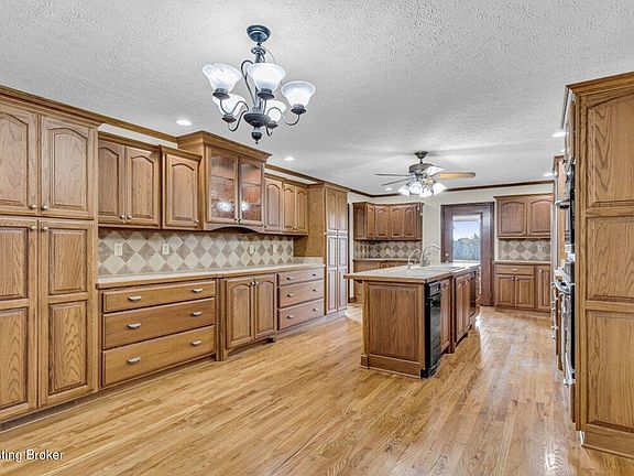 Nestled on nearly 2 acres along Floyd's Fork, this beautiful creek stone ranch offers over 3,000 sq ft of living space. The heart of the home is the expansive kitchen with a large island, double pantries, and hardwood floors. A spacious great room with gas fireplace and skylight creates a warm, inviting atmosphere.