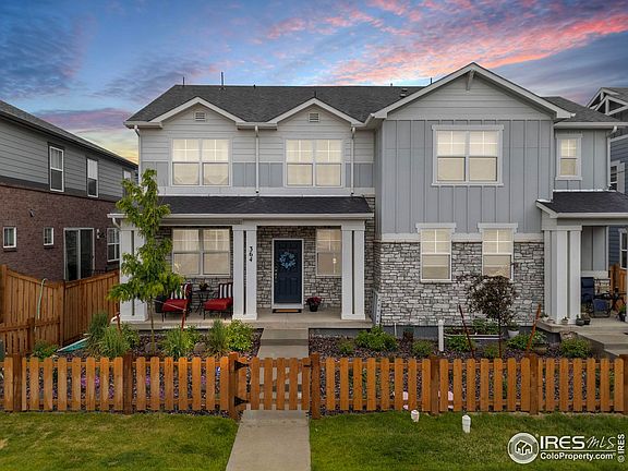 Better and New! The sunny, south-facing home has expansive windows, stunning quartz slab countertops, and a charming covered porch with a picket fence, capturing breathtaking mountain views. This home is designed for low maintenance, with synthetic grass on the long side yard and an in-ground irrigation system for the native grasses and flowering plants in the front yard. Additional features include a whole house fan for efficient cooling and fresh air circulation. The oversized, alley-access 2-car garage features soaring 20-foot ceilings-perfect for extra storage or even a camper. The unfinished basement currently serves as a workshop, with potential to add a bedroom, bathroom, or rec space. Located just steps from a park and pond in the quaint town of Berthoud, you'll enjoy a vibrant downtown, friendly community, and an outdoorsy lifestyle. With easy access to the new Heron Lakes TPC Golf Club, nearby lakes, Carter Lake, and Waggener Park & Rec Center, adventure is always close by. Every home here is crafted with innovative, energy-efficient features, promoting savings, comfort, and peace of mind. Come find your place in Berthoud-where nature, community, and mountain living meet!