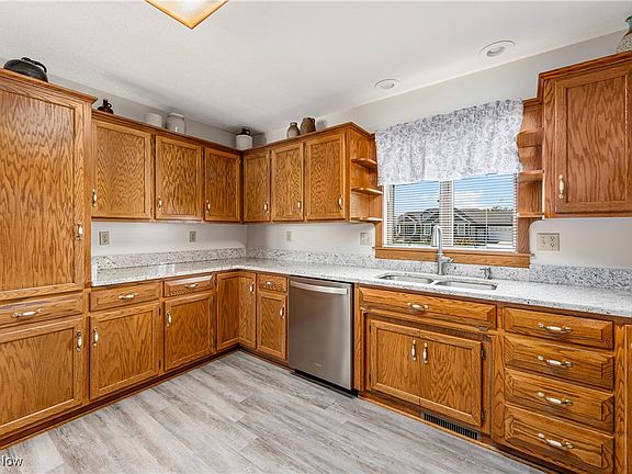 Step into this beautifully designed home, where every detail has been thoughtfully crafted for comfort and convenience. The kitchen is perfect for meal prep or entertaining guests and boasts sleek stainless steel appliances, quartz countertops, ample workspace, and plenty of storage for all your cooking essentials. The dining area opens up to the living room, creating an inviting space that flows effortlessly for socializing and relaxation. You'll appreciate the laundry room with its built-in cabinetry and a utility sink, making chores more organized and efficient. The bedrooms are spacious, with the master bedroom offering dual closets and an ensuite bath that includes a large vanity and a beautifully tiled walk-in shower. The main floor is finished off by two other bedrooms and a guest bathroom that provides a large vanity sink and a convenient shower/tub combo. Step outside to a large backyard with a deck, perfect for outdoor lounging or summer barbecues. A shed is included for storing all your yard tools and equipment. The basement, measuring a generous 35x49, is unfinished and ready for your personal touch. It features a workbench and dual entrances from both the house and the garage and also has tall ceilings. Lastly, the 2-car attached garage offers deep space for extra outdoor storage, with a door leading to the backyard for easy access to outdoor chores. This home provides the perfect balance of style, function, and comfort, waiting for its next owner to move in!