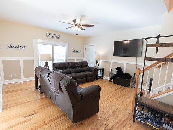 BACK ON THE MARKET, BUYERS' LOAN FELL THROUGH! GREAT LOCATION for this 3 BR, 2.5 bath home that sits on a flat PRIVATE .88 of an acre lot, great for gardening or you can fence it in for pets! This is move-in-ready as the whole inside of the home has just been freshly painted inc. the kitchen cabinets. There are hardwood floors throughout most of the main floor. You will love the spacious kitchen with Granite countertops, stainless appliances, & plenty of cabinets with an open design into the large dining area, big enough for family & friends. There are also new lighting fixtures just put in the kitchen, dining room, foyer, upstairs hall, & stairs Chandelier. Enjoy entertaining on the large deck & just relaxing on the covered front porch on your very own porch swing. There is an oversized 2 car garage on the main level, as well as a laundry room & 1/2 bath. Upstairs is the 3 BR's, 2 baths, & a large bonus room, great for a family room, kids playroom or sewing, craft room. The main BR has a walk-in closet & an en-suite tile bathroom. It has easy access, is located close to town & has HIGH-SPEED CABLE INTERNET. Dual HVAC units one for each level.
