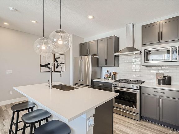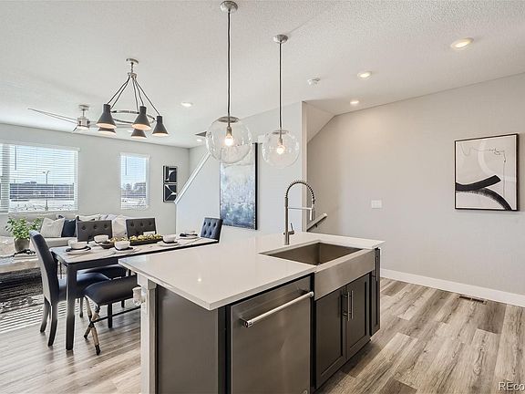 Introducing the Lowry A corner townhome with mountain views, a spacious 3-bedroom, 3-bathroom residence that offers optimal flow and versatile living spaces. Dual master suites, a balcony, and a laundry room on the 3rd floor enhance the convenience of this home. The 2nd floor boasts an open layout with a 3rd bedroom and full bath, complemented by a bonus/flex room on the first level and a 2-car garage. This is not a cookie cutter interior design. Marvel in the neutral luxury options featuring a chef's kitchen with Black Fox cabinets and pebble cabinets in the bathroom for added personalization. Hate carpet? Not a problem with all 3 levels in LVP! Now lets talk about the structural options that are unique to this home. There is a fireplace with stunning brick tile, a mud pan in not only the owners shower, but also in the 2nd bath on the 2nd level for all of your guests to see! We have included a refridorator, washer and dryer to make this a turn key home. Designed with energy efficiency in mind, enjoy eco-friendly AC, furnace, tankless water heater, lighting, moen bath fixtures, and appliances. Countless DFH included features, such as faux wood blinds on operable windows, add to the chic appeal of these homes. Perfectly situated in the heart of Metro-Denver, these exquisite townhomes offer proximity to Lowry Town Center, Lowry Dog Park, UCHealth, and Cherry Creek Shopping Center. Downtown and major highways, I-25 and I-70, are easily accessible. Argenta is more than just luxury townhomes; it encompasses retail spaces and a Central Plaza with a food truck area, event space, lawn, and captivating art installations. The community boasts two shared courtyards, featuring shaded BBQ areas and comfortable seating. 364 N Geneva St is estimated to be complete May/June 2024.
