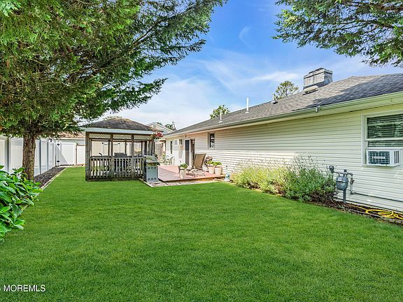 Step into a bright, open-concept living space where the kitchen, dining, & living areas flow seamlessly—perfect for both everyday living & entertaining. The remodeled kitchen features modern finishes, granite counters, island & appliances less than a year old, making it the heart of the home. Set on a large, fenced private corner lot, this beautifully maintained ranch offers comfort, functionality, & location. Enjoy the outdoors with a short walk to Lake Riviera Park, featuring a playground, basketball court, & fishing or relax in the custom wood gazebo w/electricity & ceiling fan in the secluded backyard. Other features include: Sparkling vinyl plank flooring throughout. Wood-burning fireplace w/heatilator. Updated bathroom. Andersen windows for energy efficiency and natural light