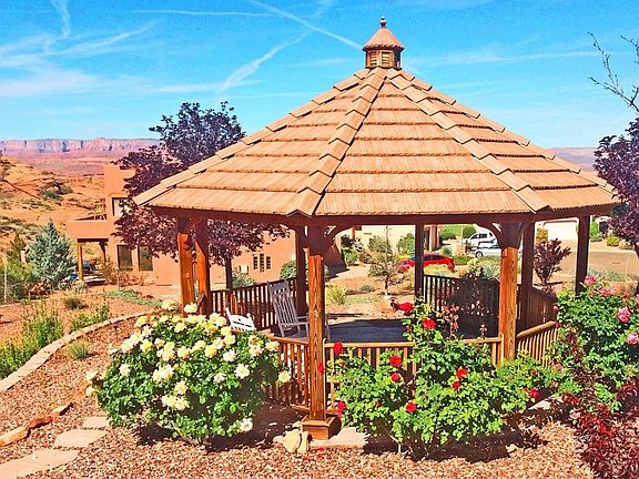 SANTA FE DREAMING ON LAKE POWELL NATIONAL GOLF COURSE Nearly 300 miles west of Santa Fe, the raging Colorado cuts a wide swath of terraced gorges, buttes, and beautiful Lake Powell. Overlooking Lake Powell is one of the most beautiful and different Santa Fe homes in the Bi dahji subdivision. This 1999 three bedroom, two and half bath home is full of the wonderful Spanish building elements: portales, vigas, latillas, kiva fireplace, satillo tile and private courtyards. Set on one of three lots totaling .82 acres, against the red sandstone cliffs, this home is truly a showplace. The master bathroom has just been beautifully remodeled. The two adjoining lots have been landscaped to perfection with a gazebo finishing off the park like setting. The over sized three car garage is exactly what every man dreams of. Time for you to call for a private showing and be ready to move into your new home.