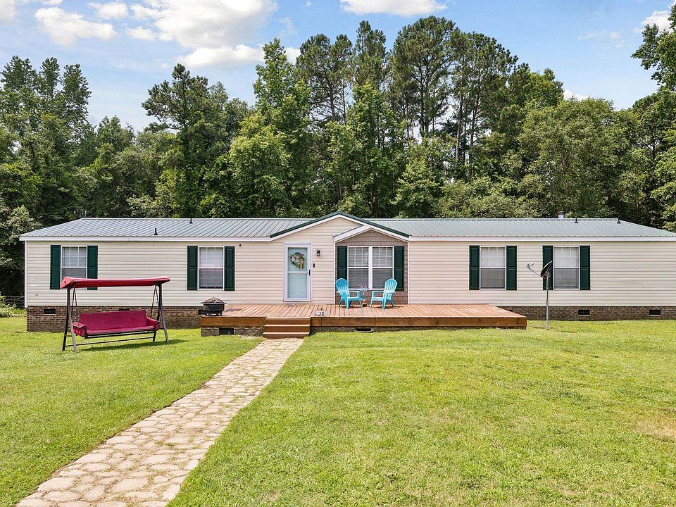 Welcome to your country retreat in beautiful Lee County! This listing showcases a charming manufactured home nestled on over 7.7acre property, comprising two parcels. The front parcel, spanning nearly an acre that previously featured two dwellings. Indulge in outdoor living at its finest with a spacious back deck complete with an inviting above-ground pool and a covered hot tub area for ultimate relaxation. Embrace the rural lifestyle by bringing your chickens and goats to enjoy the ample space. The property also boasts a large two-bay garage with a workshop area, perfect for hobbyists and DIY enthusiasts. There is plenty of storage and creative potential with the multiple detached structures on the land.