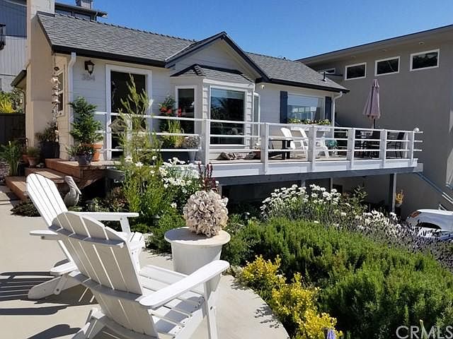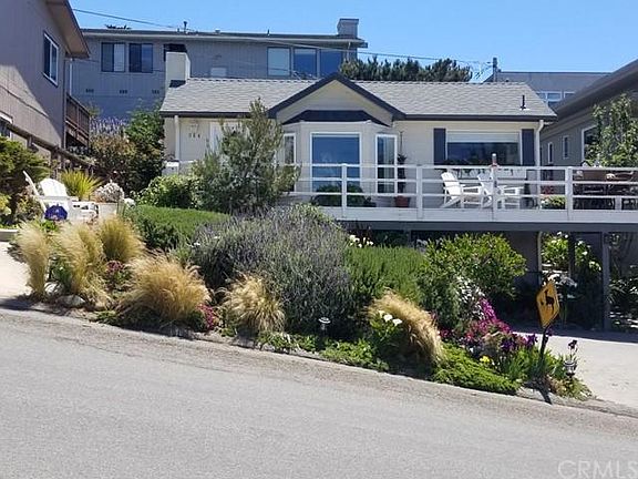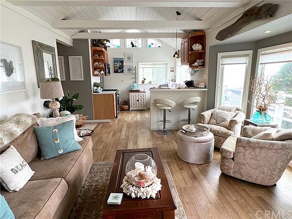 This just might be the cutest ocean view cabin in Cambria....and it could be yours! Centrally located on Park Hill, right before the road gets too steep, it's halfway between the ocean front, the 400 acre open space ranch filled with trails, and the West Village of Cambria. This property is completely ideal for your beach house get-a-way. An ocean view deck in the front is a fantastic place to BBQ or relax. Upon entering the front door, an open floor plan greets you, beckoning you in to discover the charms inside. A wood burning fireplace anchors the living area, vinyl plank flooring in a beachy color guides you throughout the entire space, and the open beamed wood ceiling adds just the right touch. Vintage character abounds. The kitchen has clerestory windows at the apex of the ceiling and plenty of sunlight from the window over the sink. There's even an eating counter separating the kitchen from the living area. Spacious and enchanting describe the vintage charm of the bedroom with its vaulted wood ceilings and French doors to the backyard.The bathroom has a large tile shower and laundry facilities conveniently hidden behind the sliding barn door. The backyard meanders with stone and moss patios, lush landscaping, relaxation area, eating area, and access to the front yard from both sides of the house. There is a large storage area under the home. The front landscaping is adorned with mature succulents, grasses and flowers. And down the street in a 5 minute walk.....is the sea.
