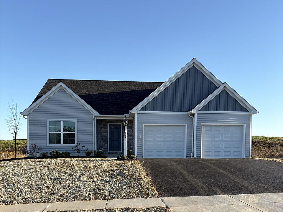 BUILD JOB! THIS HOME IS BEING BUILT TO BUYER'S SPECS. This MLS listing is a beautiful 3BR, 2BA Laurel Rancher. Buyer has chosen the following options: Classic elevation with stone at the front porch; 2'garage extension on the front with reverse gable; a wider driveway; a 12x12 covered patio with cathedral ceiling off the kitchen; breakfast island in the kitchen; upgraded kitchen cabinets & quartz counters with ceramic tile backsplash; stainless steel appliance package with gas stove; additional electrical outlets and recessed lighting; service door at the garage; upgraded front door and overhead garage doors; upgraded carpet in all bedrooms; luxury vinyl plank flooring in the foyer, kitchen area, family room, mudroom and both bathrooms. It showcases almost 1700 sq ft of elegant living space, a full lower level and 2-car garage, in addition to a host of other wonderful standard features. An entry foyer leads you to the family room open to the eat-in kitchen area. large main-floor laundry room has garage access. The primary suite features a walk-in closet and full bath, with double bowl vanity. A full lower level, with Superior Walls, is the perfect place for future expansion or just use it for storage!