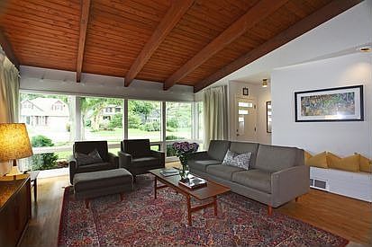 Coveted mid-century modern gem, 1954 custom built by Harry J. Quinn. Efficient home with eco upgrades, standing seam metal roof, high efficiency utilities, passive solar heating. Natural materials and light. Hardwood floors, porcelain tile floor, vaulted wood beam ceilings. Open floor plan, large windows, close to train, schools and prairie path. Gas fireplace. High quality and style. You will love where you live!