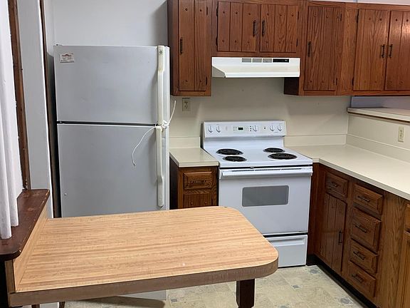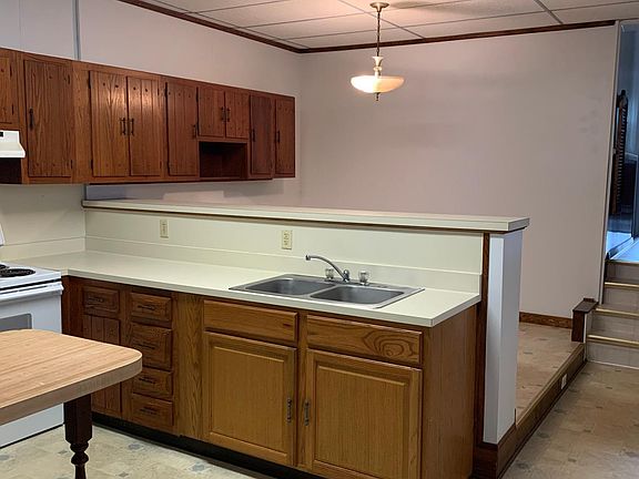 Downtown 1st fl apartment offering 2 bedrooms, full bath, large living room with built in cabinets, large kitchen with bar, dining area, and off street parking. Owner pays water, sewer, trash, & lawn care. This unit is a no smoking or vaping unit. If you are interested in seeing this, please contact us with your daytime availability Monday-Friday 8:30 AM to 4:45 PM. We are closed on the weekends. Pet welcome with a $50/mth upcharge, $250 non refundable pet fee AND a positive landlord reference with the pet. After you view the unit, if you are interested in the property you will need to complete a rental application which is a non-refundable fee of $30.00 and covers your credit (minimum credit score of 600) and criminal background screenings. We also verify that your household income is three times the rent amount after taxes (net). Unemployment does not count as income. No bankruptcy, short sale, or foreclosure within the last 2 years. Your application will be automatically denied if you have any current or previous landlord tenant actions against you or any evictions. We do not allow any co-signers! We do not accept Section 8 vouchers. Once your application is approved, it is good on all of our properties for 90 days.