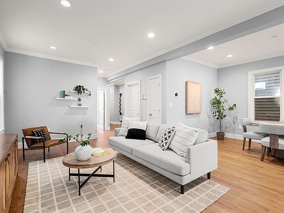 Luxury Living with Water Views — This spacious, beautifully renovated 2+ bedroom, 2 bathroom condominium offers a wonderful open layout, tall ceilings, incredible storage, and high-end finishes throughout. The open-concept kitchen, dining, and living area features maple hardwood floors, crown molding, and meticulous attention to detail. The chef’s kitchen includes white cabinetry, granite countertops, premium stainless steel appliances, and a wine fridge. The expansive primary suite boasts a custom-tiled bathroom and a generous walk-in closet. Enjoy stunning water views and Boston skyline vistas from your exclusive-use deck. An oversized (approx 30' x 20' or 615sf) bonus room with heat, hardwood floors, built-in storage space, plus direct backyard access is the cherry on top. Ideally located close to public transportation, shopping, and dining. Video: https://listings.dronehomemedia.com/videos/01968d3a-b203-71e5-bde7-ebc9917e4b99