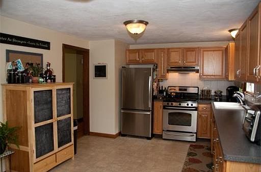 Looking for the house with plenty of room for everyone? This split-entry home in Uxbridge has it all! Updated kitchen with an open floor plan to the dining room and living room plus access to the fabulous three season porch. Five good-sized bedrooms and two full bathrooms. Finished walk-out basement would be perfect for your teenager or in-law also includes a wood burning stove for winter heating. Other updates include: roof, flooring, front exterior stairs, windows, vinyl siding, kitchen and bathrooms. This home is truly move-in and enjoy condition. Lovely, level back yard with shed. Circular driveway.
