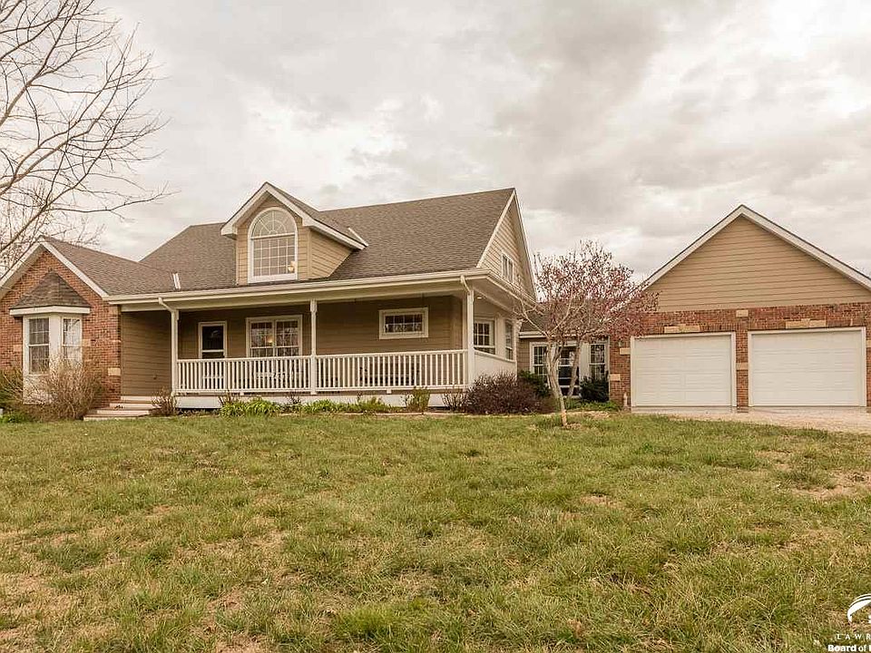 Rare opportunity! Nicely appointed custom home on 10 acres just a short drive west of Lawrence. Quiet setting w/ stocked pond, fruit trees, large garden area, and plenty of space to spread out. Nice outbuilding. Solidly built 1.5 story home with walk-out level basement and three attached garages (one on lower level). Main level master suite plus additional 1st floor bedroom perfect for guests. 2 bedrooms & Loft upstairs. NEW roof & Hardy siding. Slow down and enjoy the sunsets, wildlife and fresh air!