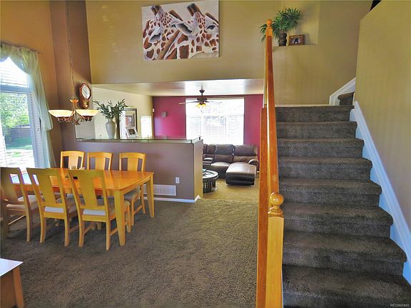 Great family neighborhood close to schools, parks, trails, shopping, and highways for an easy commute. Very open floor plan with vaulted ceilings and open staircases with wood railings. The kitchen has bar top seating with a large breakfast nook & all the latest appliances, and has a built in office/study area. Just off the kitchen is the family room with a built in entertainment area and a gas fireplace. As you enter the home you're greeted with a large living room and dining area, with high vaulted ceilings. The master suite has a 5 piece master bath, walk-in closet, and a cozy retreat area which can be used as an office or just a place to get away from it all. The 2 tier basement has been beautifully finished with a wet bar, a home theater area, game room, an additional large bedroom with bath, and an extra room for storage or exercise room. You will absolutely love the established backyard with a colored concrete kidney shaped patio, curb scaping, storage shed, and hot tub area.