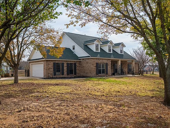 Discover your own private slice of heaven on 8.4 fully fenced acres featuring a serene private lake with dock and spectacular sunset views from the front porch. This beautifully crafted 3,654 SF custom home offers 4 bedrooms, 3.5 baths, and an attached 2-car garage. The first-floor primary suite includes a SAFE ROOM closet for peace of mind on stormy nights. Upstairs, a second primary suite features a spacious sitting room and ensuite bath. The open layout provides comfortable living and abundant natural light throughout.