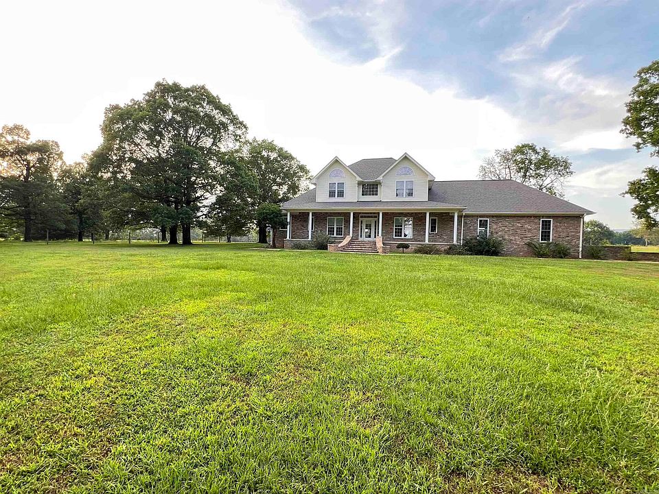 Looking for your dream home? This classy custom brick home sits on 248 acres with the perfect blend of cross fenced pastures and trees! The open floor plan features new laminate flooring throughout the lower level, Fresh Paint, NEW A/C unit, 18 ft. ceilings, built in oak book cases and cabinets, double hung windows, and a pellet stove with 20+ bags of pellets. The kitchen boast a double oven, a wall oven, a stunning blue sink, and plenty of cabinets! The pantry/laundry room is equipped with a double sink, tons of storage, BRAND NEW refrigerator, and a full bathroom! The primary suite is on the main floor, with 3 bedrooms on the lofted second floor. Additional features include a formal dining room, breakfast dinette, office/piano room, 2 soaking tubs, whole home backup generator, a NEW security system, and a large 3 car garage. The home is being sold fully furnished, and includes some beautiful pieces! Step outside to the POOL and enjoy views of RICH MOUNTAIN as you relax. This secluded acreage includes 5 ponds, a hay barn, and a shop for equipment. This unique property has been enjoyed and adored by its original owners for decades. Don't miss out on this one of a kind oasis!