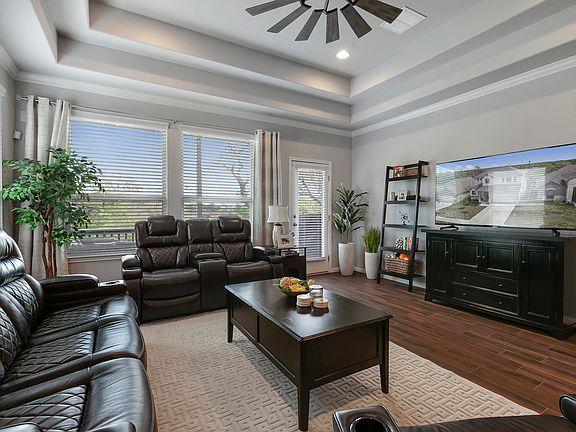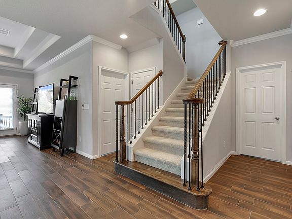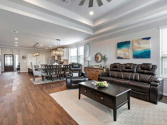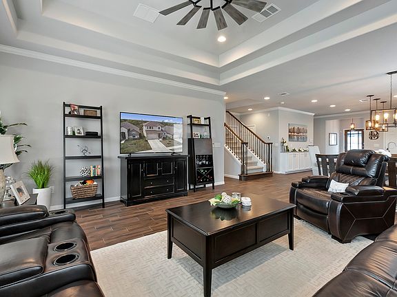 This two-story, 5-bedroom, 3-bathroom layout places connection above all. The kitchen, planned to perfection, has a walk-in pantry, additional cabinet row, island, and direct access to both the walk-in utility and two-car garage for easy clean-up and short grocery trips. It flows seamlessly with both the dining and living rooms, highlighted by double tray ceilings and a beautiful sightline to the optional outdoor living space. The first-floor Owners Suite has a dual vanity, a separate shower and tub, and a spacious walk-in closet. Upstairs, the media and recreation rooms provide more space for togetherness, with a private foyer for the secondary bedrooms. As one of our most popular planswith extras like a garage workspace, plentiful storage, and beautiful architectural detailsthe Sterling couldn't have a more fitting name..