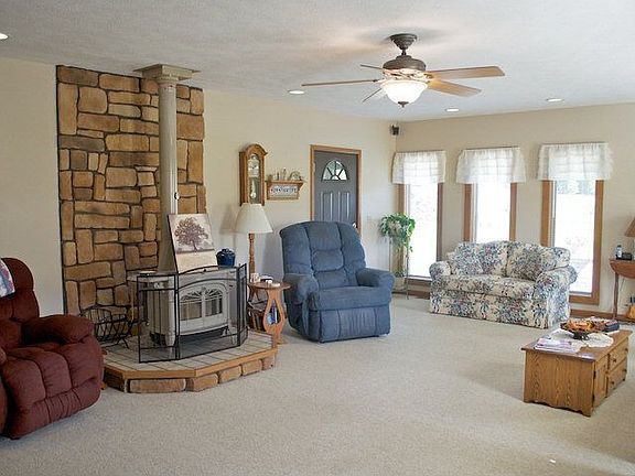 East-facing sun room is the perfect spot to enjoy your coffee in the morning. Lots of spacious living areas graciously decorated with solid oak trim. Over-sized (36' deep) heated garage with heated workshop and 2nd floor storage. Lots of amenities including: natural gas Generac generator with automatic switch, reverse osmosis water system, water softener, 2 fireplaces, and security system. Many recent updates: paint, brick flower beds, furnace, brick patio, replacement windows, Trex deck, gutters and downspouts. Well insulated. Storage galore! Close to park, shopping and freeway.