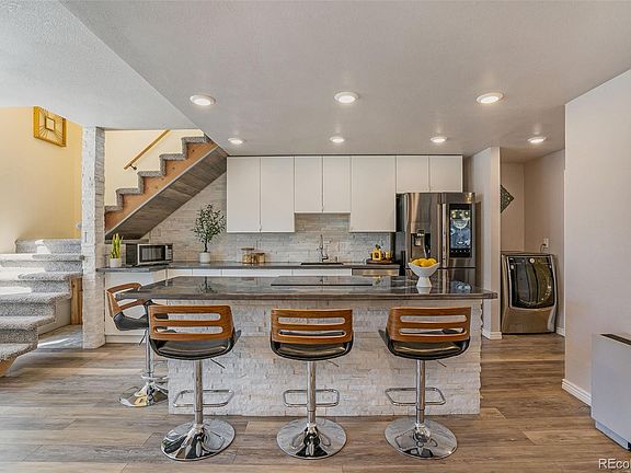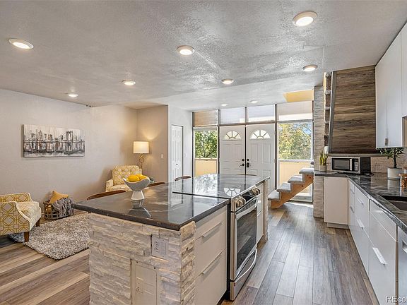Back on the Market! - Penthouse condo with a townhome style and feel. 3 bedrooms and 3 full baths. Rooftop patio with mountain views. A touch of retro but modernized to today's vibe, this space has so many possibilities. The main level features an open living area with an updated kitchen that includes a smart refrigerator, induction range and pantry. A bedroom off the living room is great for an additional living space, office or media room. The upper floor has a large bedroom with an ensuite bath with jet tub, walk-in closet and built-in desk. Down the hall is another bedroom with its own ensuite bath. The bonus is the rooftop patio to turn into your own outdoor urban oasis. Two carport parking spaces with storage cabinets, and additional parking available. Elevator access. 2 pets allowed. Next to High Line Canal Trail, Echo Park, restaurants and CommonGround Golf Course. - Recommended lender is Ryan Hillard, Forward Mortgage. Please contact listing agent for details. -