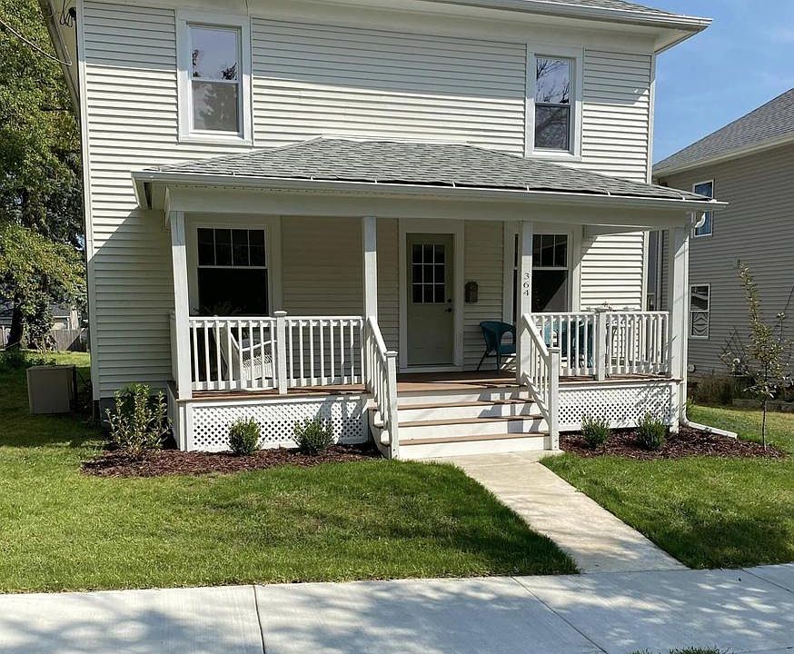 Newly renovated classic home! This home is on a beautiful residential street yet walking distance to schools & quaint downtown shops. A large front & back porch provide terrific outdoor space to relax & entertain. Walk into the living area & enjoy the bright interior w/ large new windows & an open concept design that lets the sunshine into a wonderful gathering space. The kitchen includes new appliances, cabinets, a butcher block island w/ seating & a pantry w/ plenty of storage space! There are 4 bedrooms, including two that are adjoined and could be turned into one luxurious master suite with an office. 2 full bathrooms & first floor laundry provides all the conveniences for daily living. Everything is brand new including siding, wide plank flooring, AC & furnace!