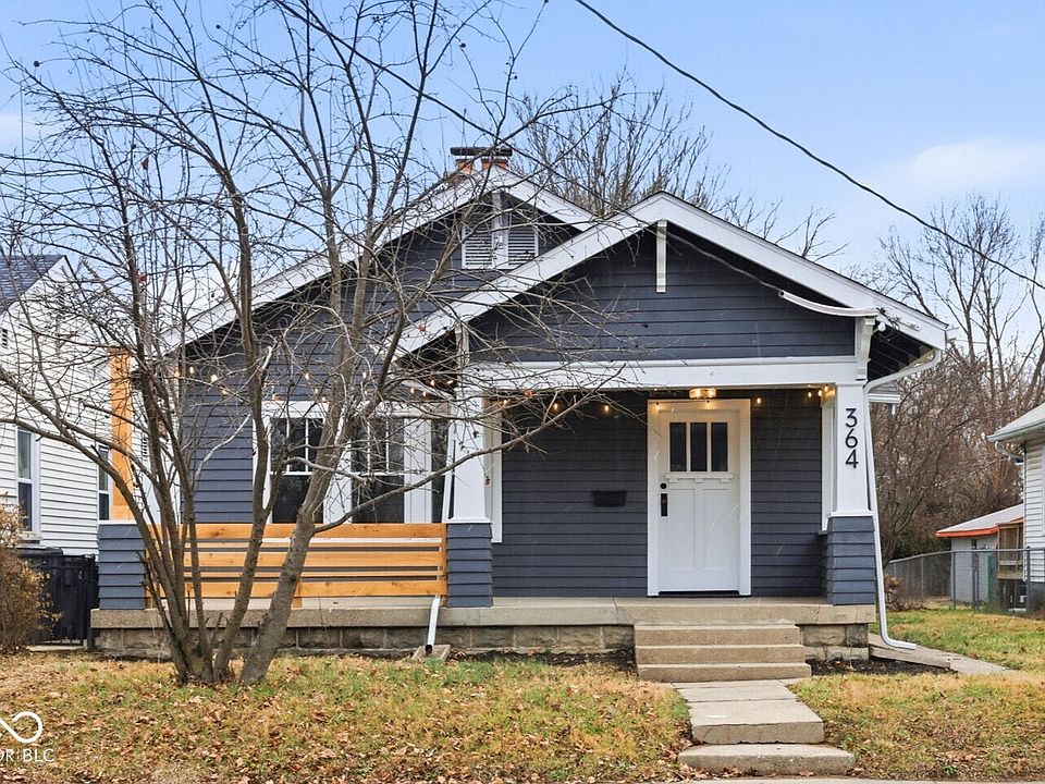 Historic Irvington living awaits in this beautifully updated 2-bedroom bungalow. Loaded with custom finishes, this property embodies sophistication and comfort. The kitchen is a culinary masterpiece, featuring high quality slow close cabinets, granite countertops, and sleek black stainless-steel appliances. The living room is a cozy retreat with its accent wall and central electric fireplace, ideal for unwinding. Enjoy the serenity of the covered front porch or escape to the secluded backyard. A parking area, accessible from the alley, provides a convenient parking location. Natural light filters throughout the home, creating an airy and inviting ambiance. This home also includes an unfinished and dry basement, supported by a perimeter drain system, offering a clean and versatile space with exceptional potential for storage and/or future expansion, like a workshop or exercise room. Explore the vibrant Irvington area and savor the ease of downtown living just minutes away. With a new furnace, AC, appliances, flooring, and pretty much everything else, this home is move-in ready, offering a delightful lifestyle for the discerning homeowner...This one is special!