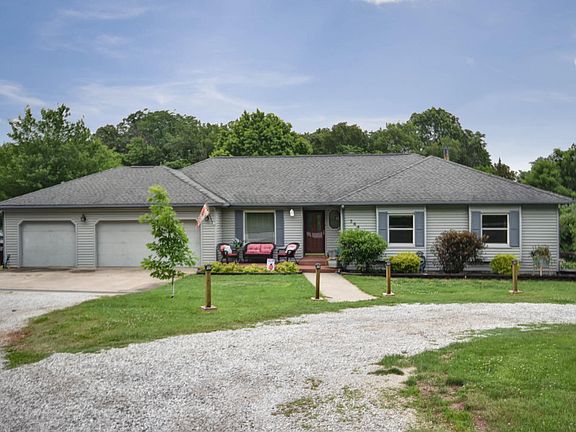 Walkout basement on 3.3 acres in Nixa Schools! Spacious kitchen with granite counter tops, island, lots of cabinets and a wonderful pantry. Large Formal Dining (currently being used as an office) is conveniently located just off the kitchen & has ship lap. The master suite features double sinks & private access to the large deck to enjoy the beautiful sunrises. There are two more spacious BR's upstairs. Wonderful basement features large family room which has a FP, 3 BR's (one doesn't have a window), a room that would make an excellent hobby/craft area. A sprawling deck that is the length of the back of the house. Large back yard with trails, bridges & lots of space to roam. Water softener & full house water filtration system. A beautiful setting with a circle drive on 3.3 acres.