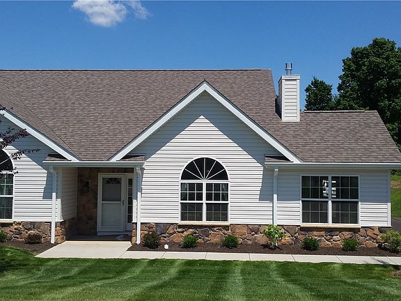 Single Level Floorplan with Sunroom and Corner Fireplace. Rear Facing Location offers private Wooded scenic view. Low Maintenance Community Lifestyle includes: Lawn care, Snow Removal, Exterior Maintenance. Clubhouse, Fitness Room, and Swimming Pool amenities.