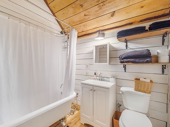 An intimate rustic cabin nestled in the picturesque mountains. This cozy, country-style tiny house is perfect for those seeking a peaceful retreat and a quite place to live. Attached to the main mid-1800s farmhouse this cabin Offers a wonderful mountain getaway experience. Situated atop the northwestern Catskills region, surrounded by 50 acres of meadows, pastures, and woods with a spring-fed pond and babbling streams. Crafted with locally sourced wood by skilled carpenters, ensuring a genuine and authentic atmosphere. Full bath includes bath tub, fully equipped kitchen and a gallery style bed plus a sofa - Bed. We are open to rent the pastures, woods, land and the Barn as well if you have Animals and / or Livestock. Leases can be short, medium or long term.