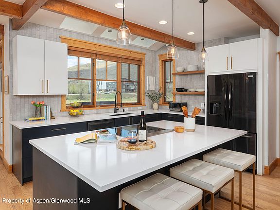 This meticulously maintained and upgraded home in the thriving Willits neighborhood ticks all the boxes. Located on a corner lot on the edge of Sopris Circle, the 3-bedroom main home features: new paint and freshly refinished wood floors throughout, fully remodeled kitchen with walk-in pantry, new appliances (kitchen, washer/dryer), a spacious and functional mud/laundry room off the garage, newly renovated guest bathroom, central A/C, water softener, tankless hot water heater, electric car charging in garage, and extensive backyard enhancements (new fencing, landscaping with mature trees and boxwoods, pet-friendly turf, Trex decking, and outdoor fireplace). The primary bedroom features vaulted ceilings and a private, south-facing deck, and the bath has heated floors. The centerpiece of the home is the handsome, modern steel staircase. Two distinct features set this home apart from others in the neighborhood: a lovely, private setting with no other homes visible from the main living level (rare in Willits!), and a spacious one bedroom PLUS loft ADU with a full kitchen and private deck providing excellent rental income to offset the mortgage, or additional space for a nanny or guests. Willits is home to Whole Foods, Starbucks, shops, restaurants, parks, medical offices, and TACAW, a state-of-the-art performing arts center.