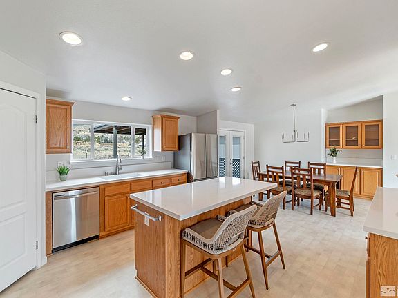 This homesteading ranch is massive, 4 bedrooms, separate living spaces, over an acre lot size and has an attached and detached garage totaling 1000 SF Garage storage space. Interior is turnkey, brand new quartz countertops, brand new stainless steel appliances including refrigerator, fresh interior and exterior paint, brand new carpet. The water heater is brand new and the owners just installed a BRAND NEW 30 year roof, this home is better than new. But wait, there's more..., Off-grid back up wind generator system supplies electricity to home in tandem with NVE. ALL ELECTRIC home on a sustainable system means low bills and easy maintenance. Driving in, you'll notice the pride of ownership in this neighborhood.Large level lot with space for horses or livestock. Views every way. Quick access to highway 50 and 6 mile canyon road. Dayton is a growing community suburb of Carson City. Close proximity to USA highway / Tahoe Reno Industrial Center.